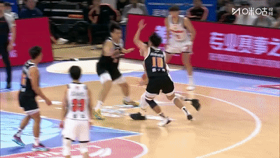 3分57秒,胡明轩替补出场,三分2投1中状态还行,但在一次突破过程中空中失去平衡重摔倒地,险些伤到了肩膀。